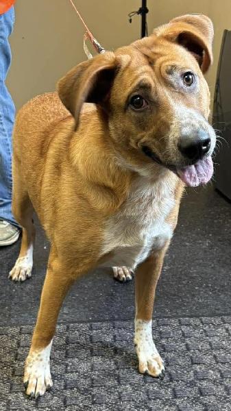 Notes: Sissy girl is almost a year old and weighs 58 lbs. This pretty girl has a curious and gentle personality. Her facial expressions will throughly convince you she understands every word you are saying. She is good with other dogs, cats, and kids. Sissy is house trained too. If you are looking for a well mannered snuggle bug who will also keep the kids entertained then she is your girl.